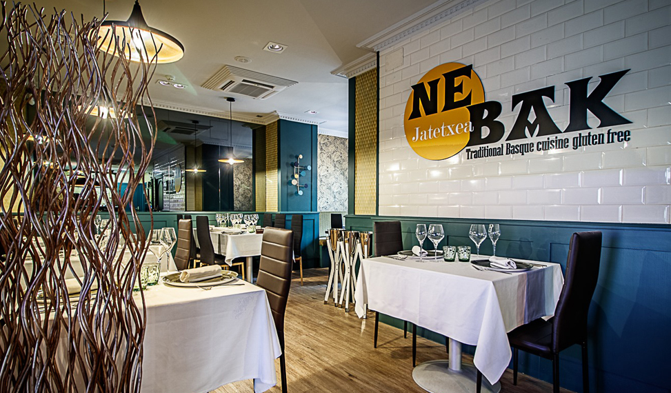 Nebak Jatetxea se ubica en el casco viejo de Bilbao, muy cerca del Teatro Arriaga. Restaurante tranquilo y acogedor especializado en cocina vasca tradicional 100% sin gluten. Gran bodega y excelentes menús degustación.